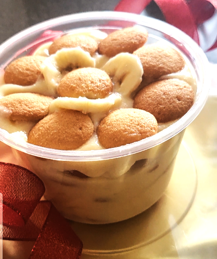 Indulge in our delectable desserts: Banana Pudding 8oz $7, 16oz $10