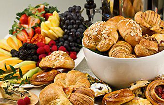 Indulge in a delectable cold breakfast for only $15.00 per person. Enjoy an array of assorted Danishes, honey glazed croissants, muffins, and bagels with cream cheese and orange juice. Upgrade with a fruit salad for an additional $5.25 pp.
